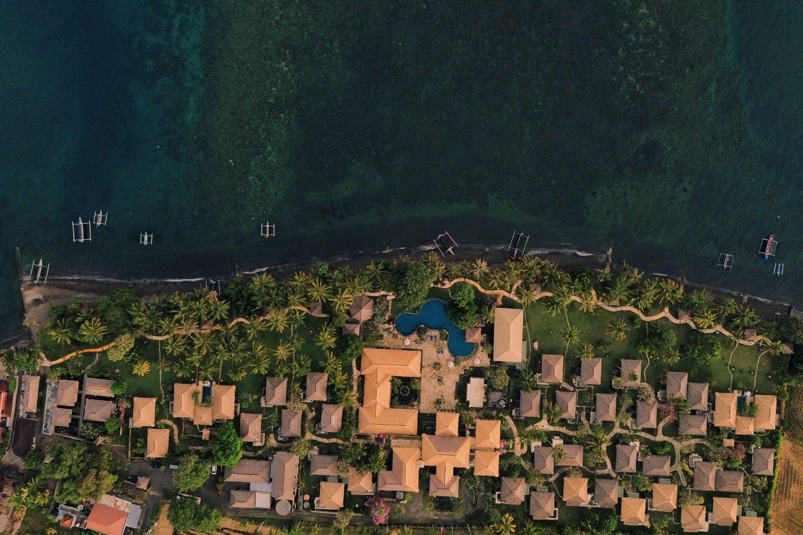 Aerial view of lagoon-style swimming pool at Puri Bagus Lovina