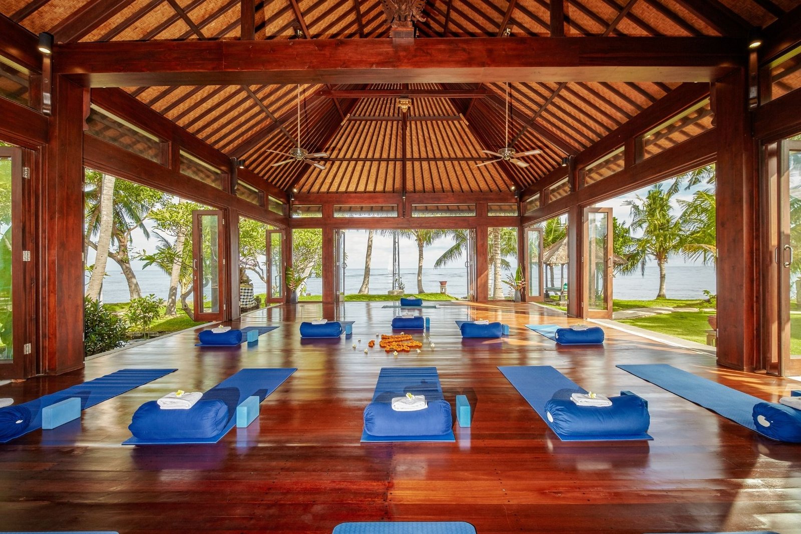 Nestled amidst lush tropical gardens with stunning views of the Bali Sea, Maharani Shala Pavilion is a captivating, open-air venue designed for unforgettable occasions. Its traditional Balinese architecture and tranquil ambiance provide the perfect backdrop for weddings, yoga retreats, and group events. It offers a spacious, serene setting for creating cherished memories in a quiet environment.