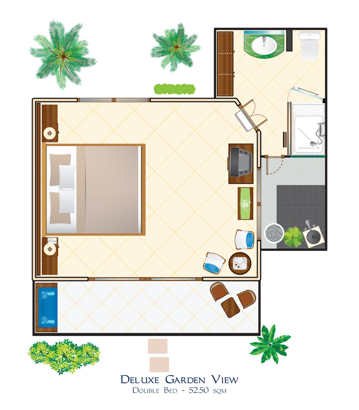 Deluxe Garden Villas offer a tranquil oasis amidst the resort’s meticulously manicured gardens. The elegantly appointed rooms feature spacious interiors with tasteful Balinese decor, creating a serene, relaxing ambiance. Each room features a private terrace where you can relax and enjoy the vibrant garden’s soothing views. Ideal for those seeking a serene retreat, the rooms offer an exquisite blend of natural beauty and refined luxury in tropical landscapes.
